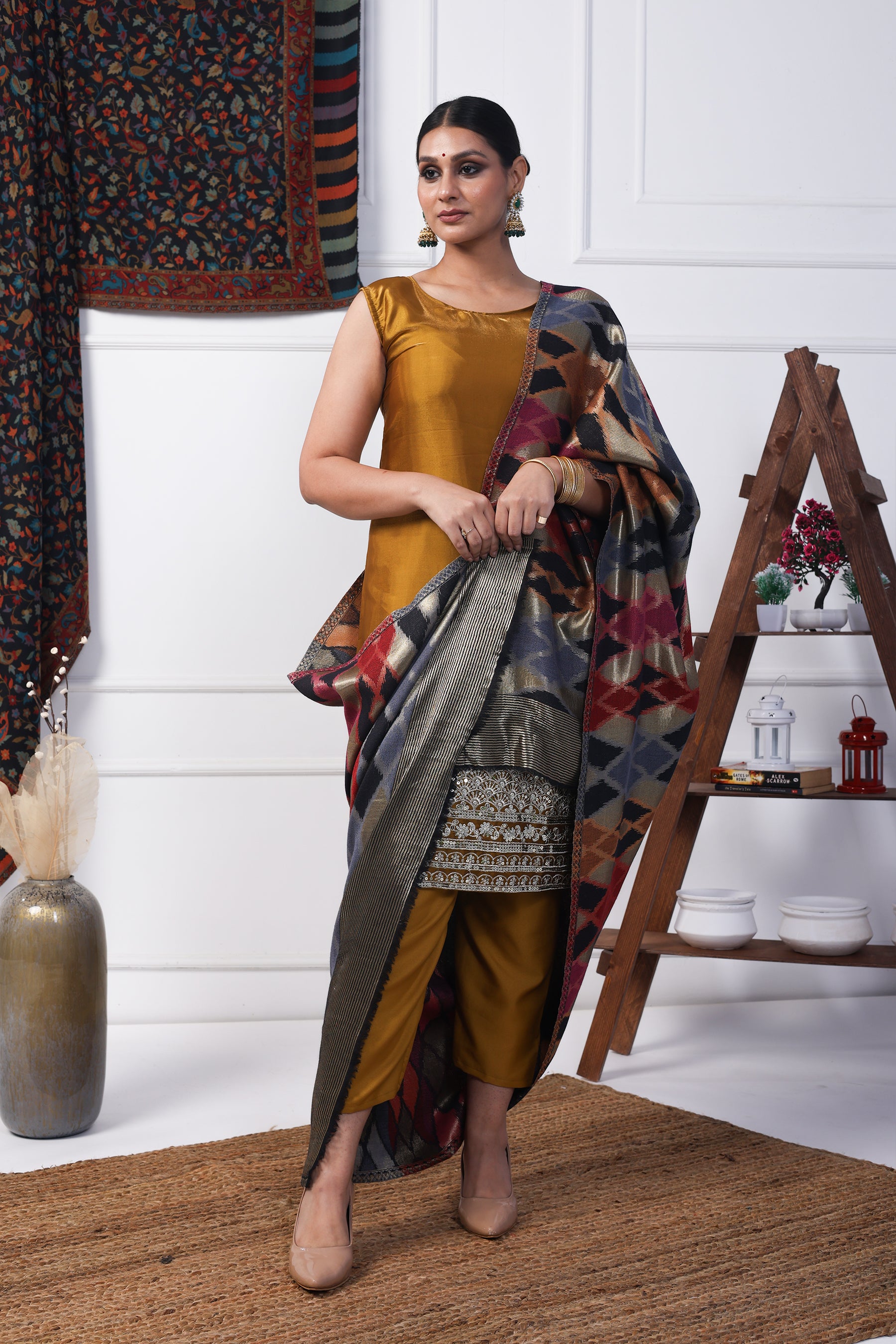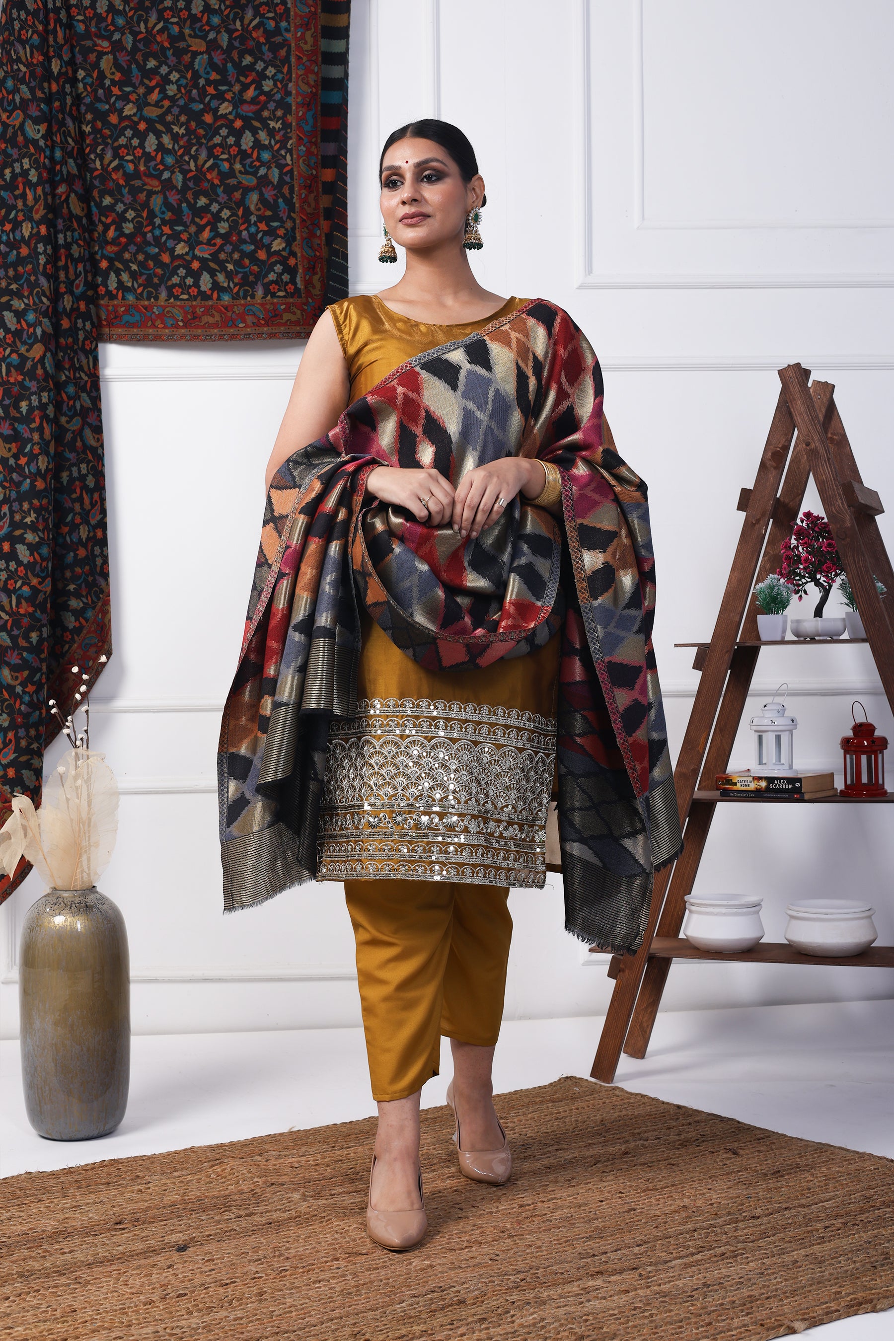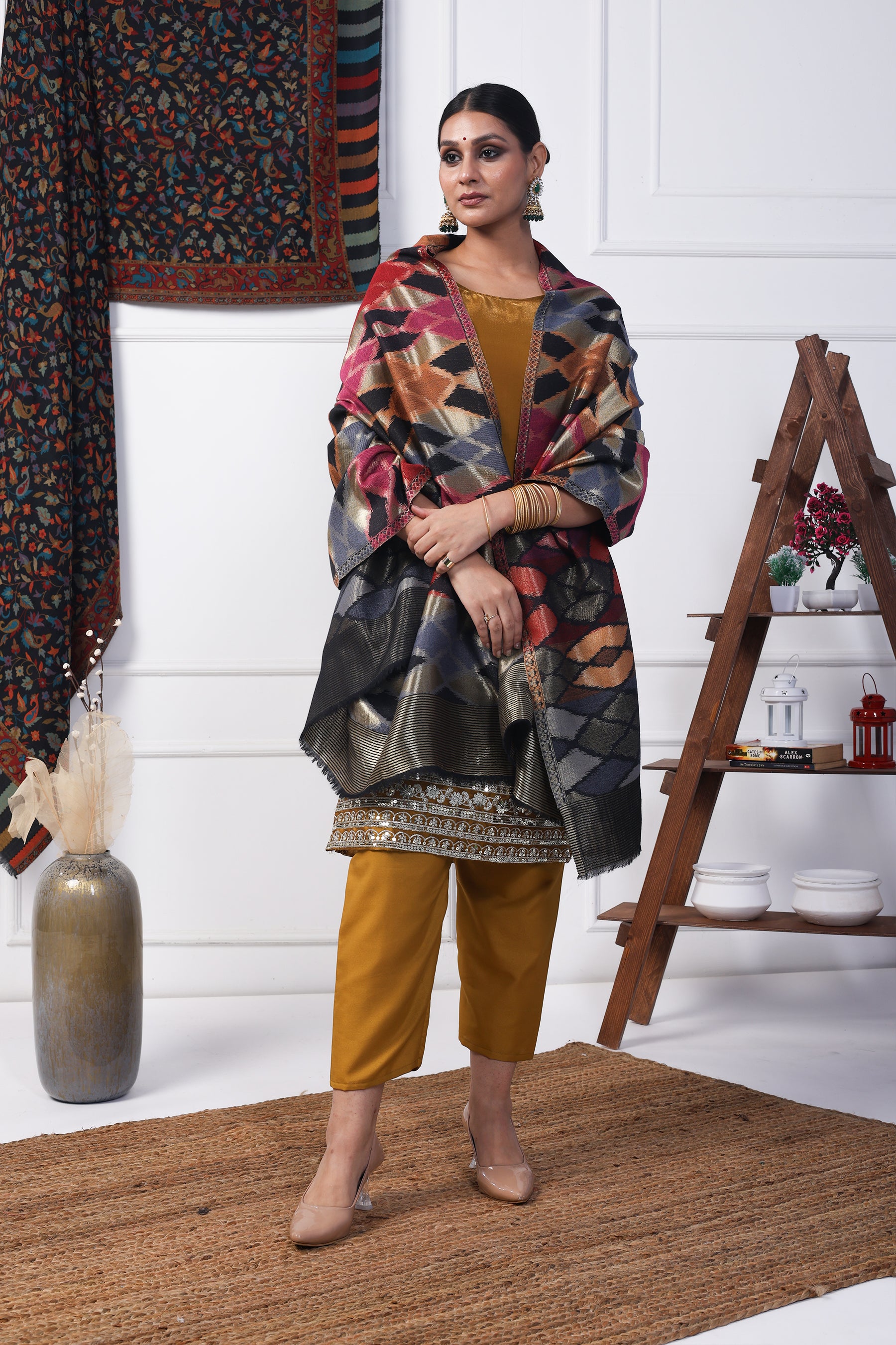 - Name: Multicolor Ikat Diamond Pashmina Shawl