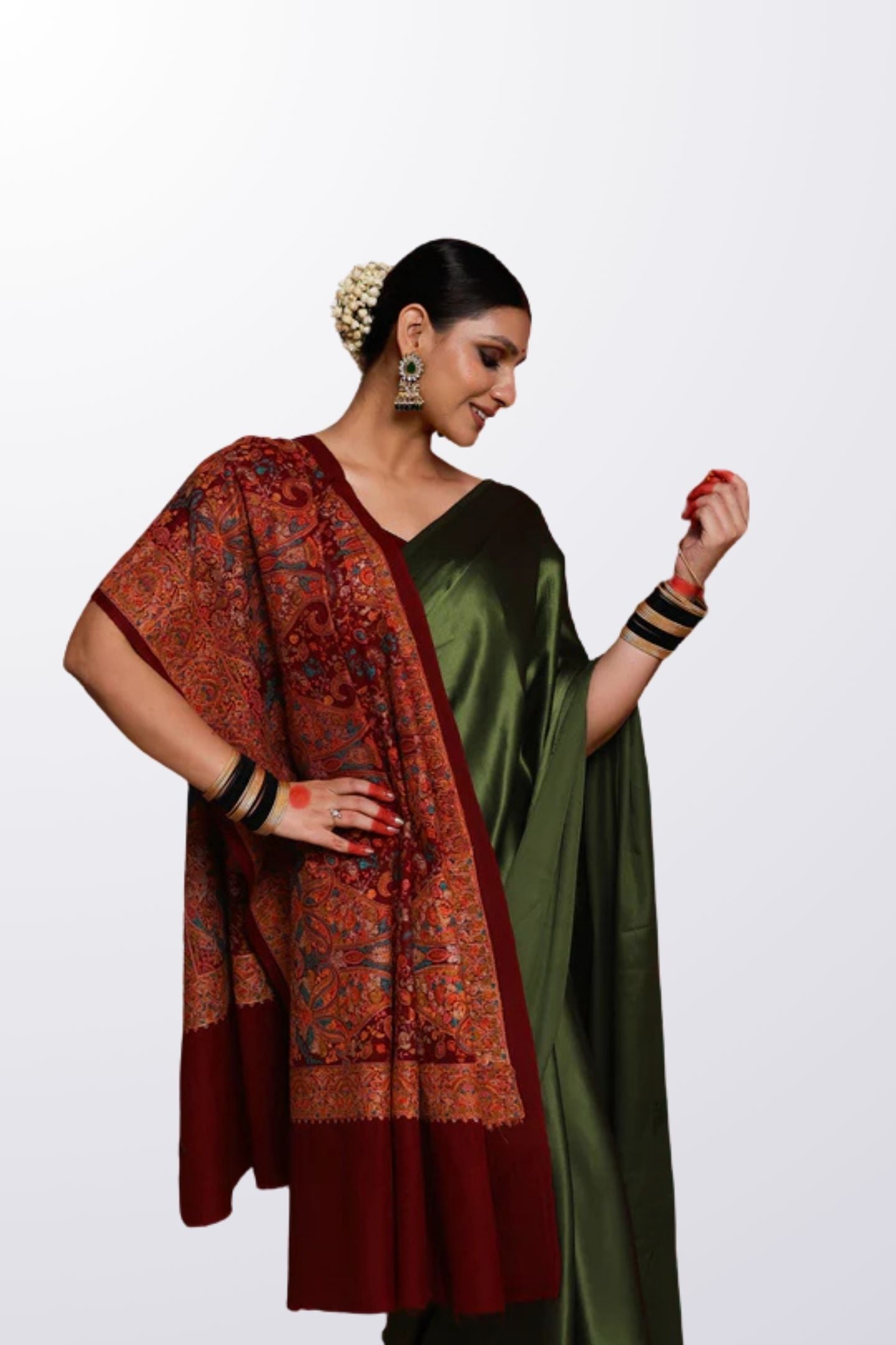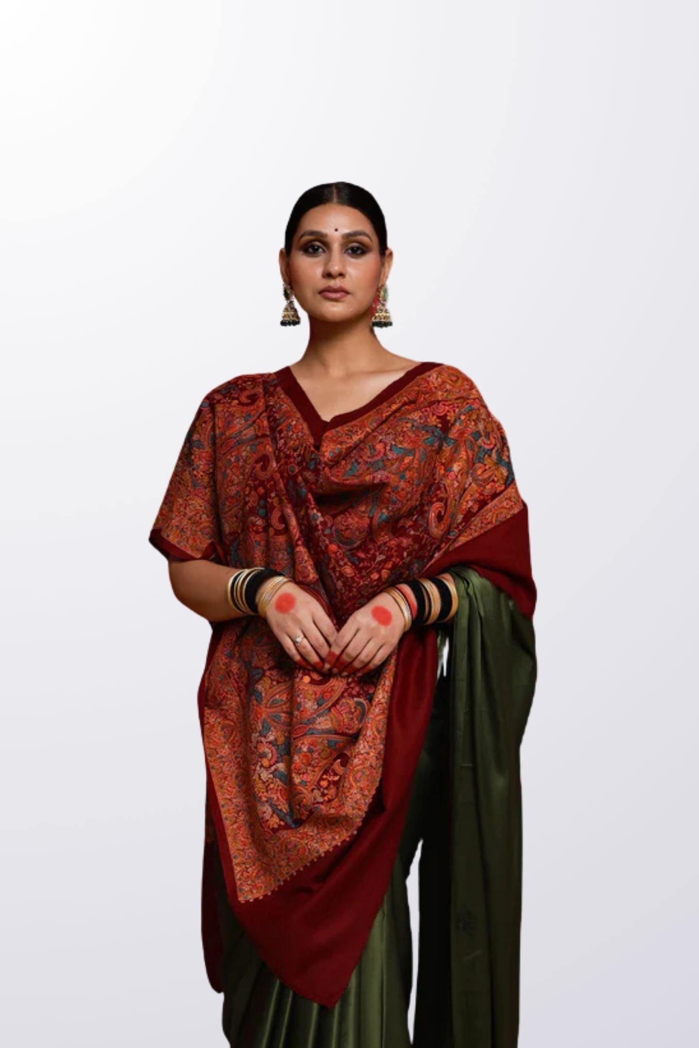 Paisley Vine Embroidery Shawl - Rich Maroon