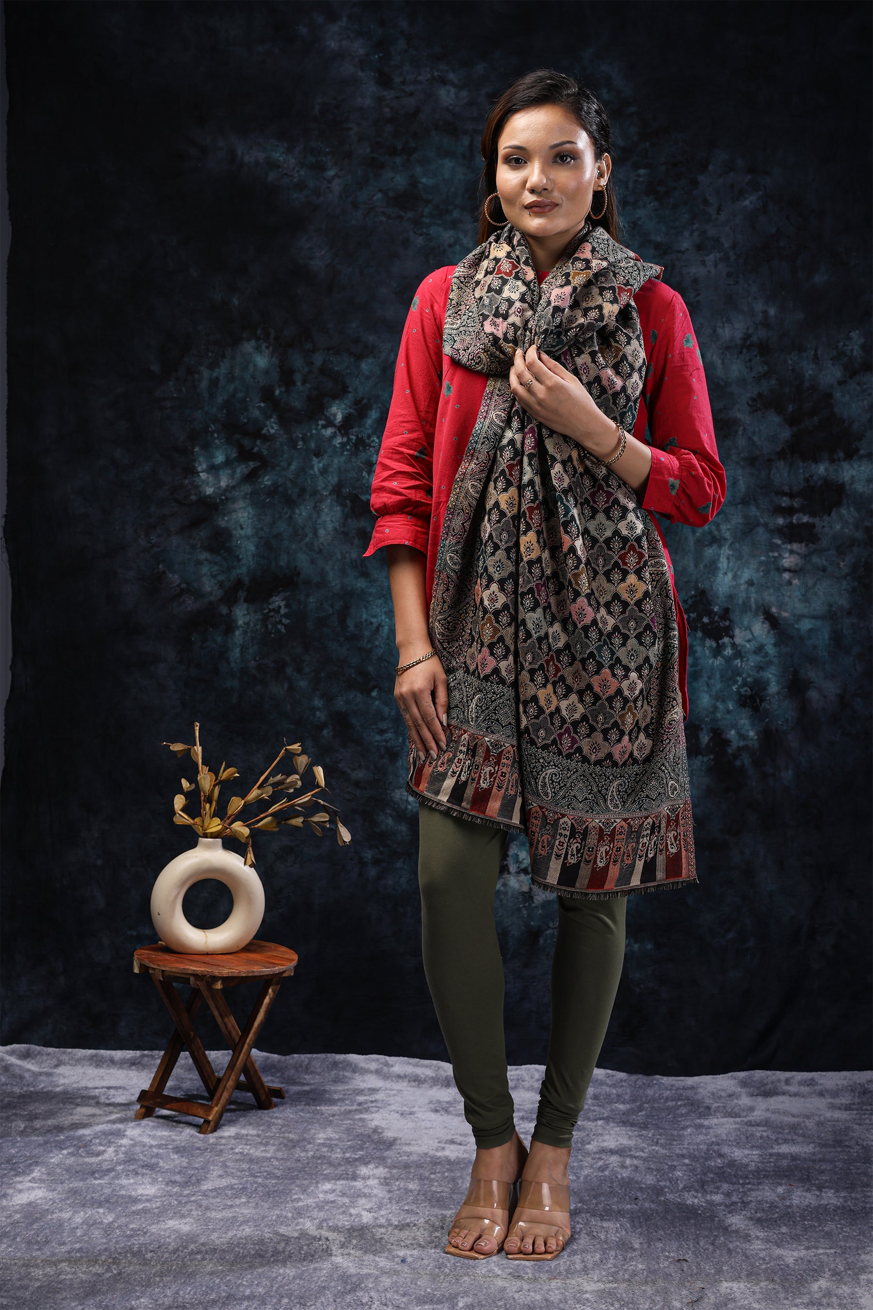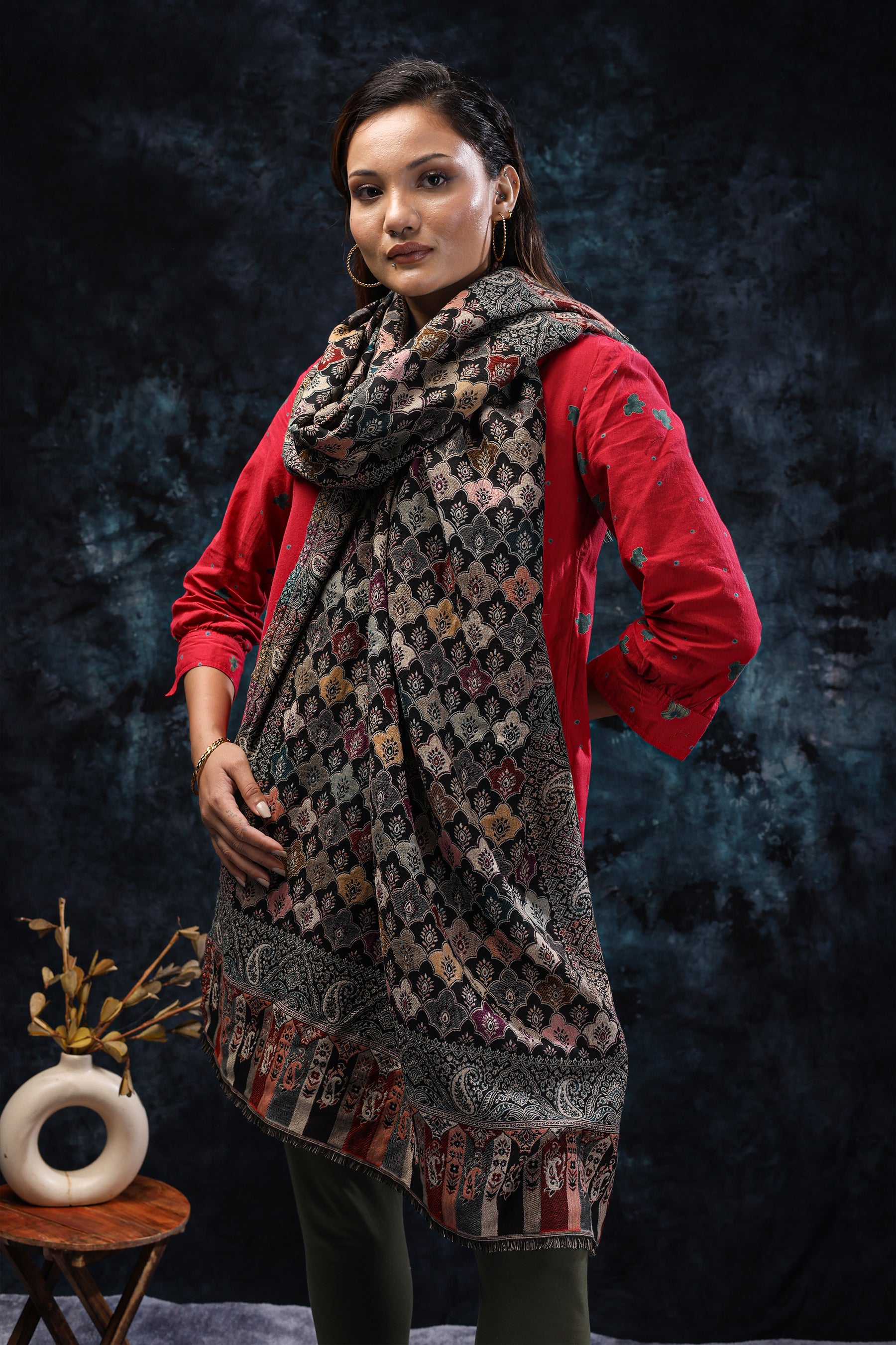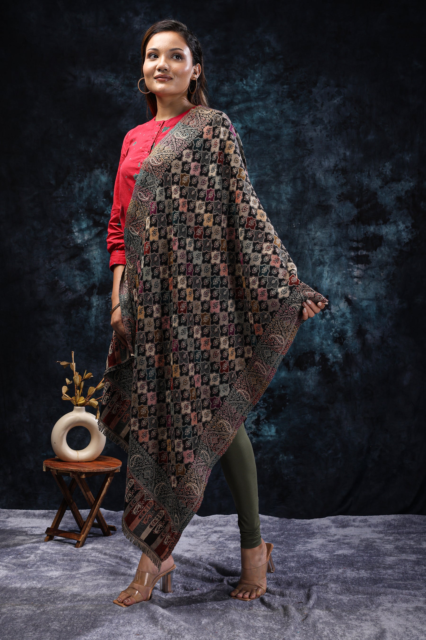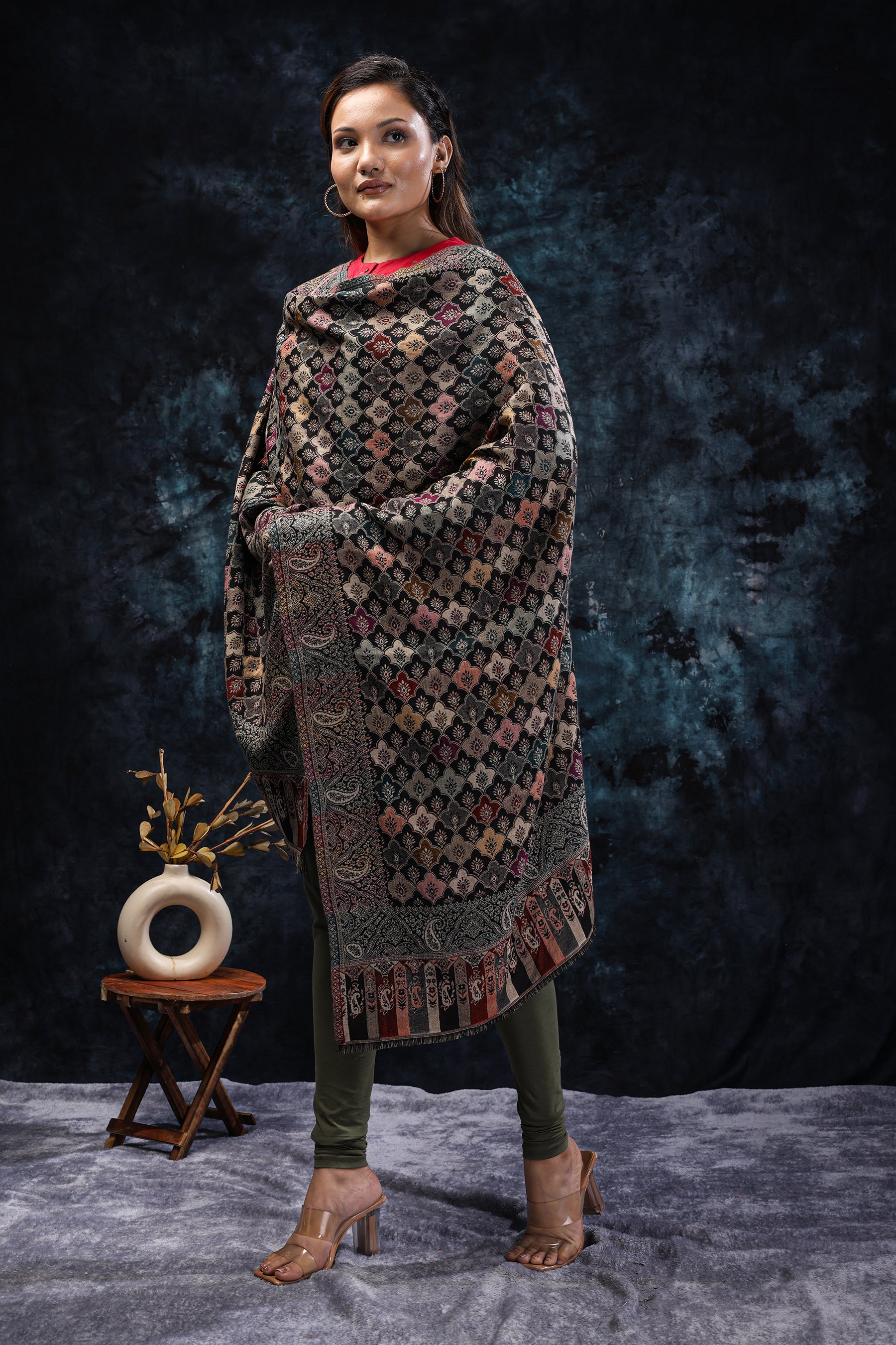 Black Stole with Multicolor Floral Scales
