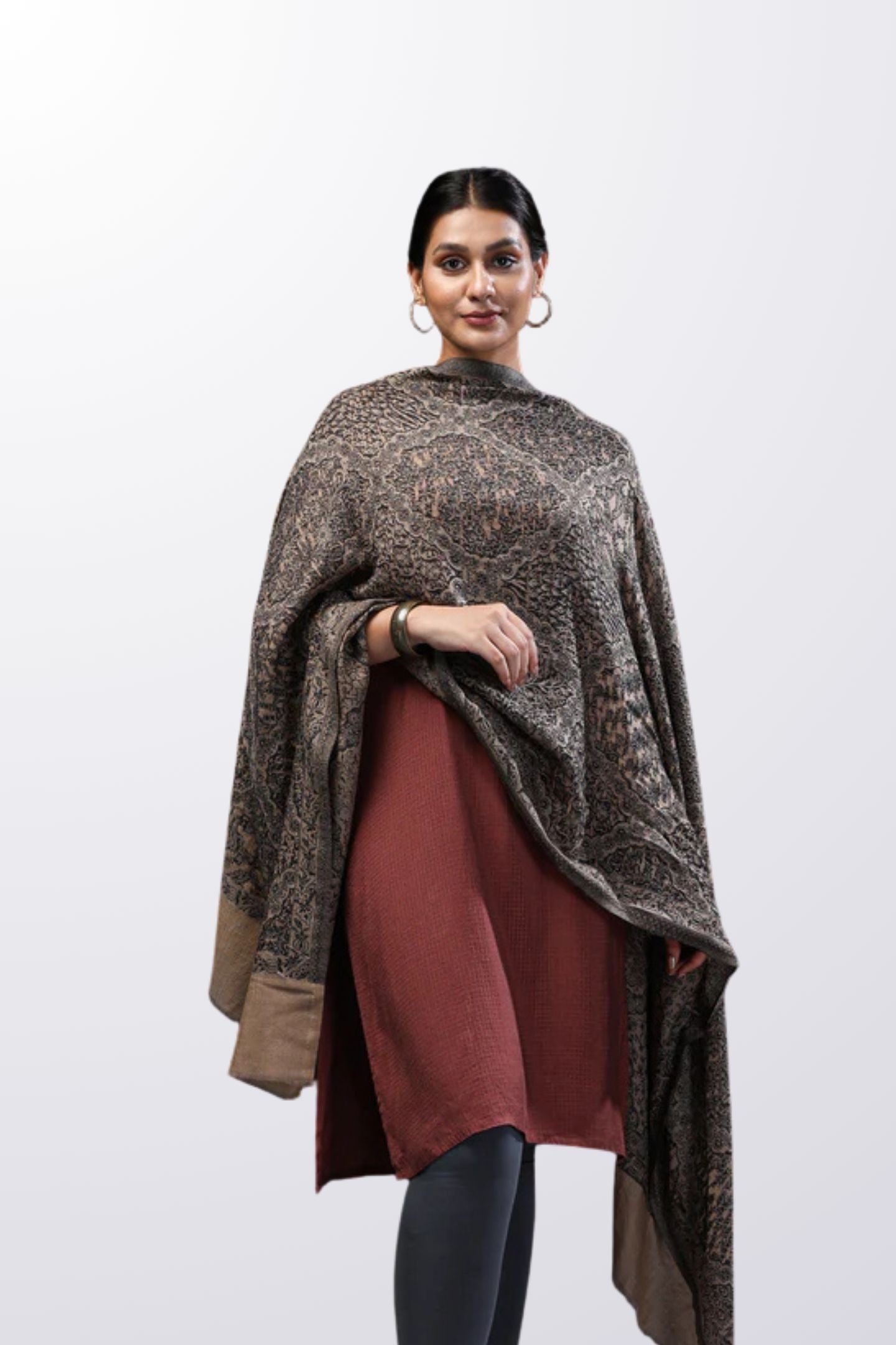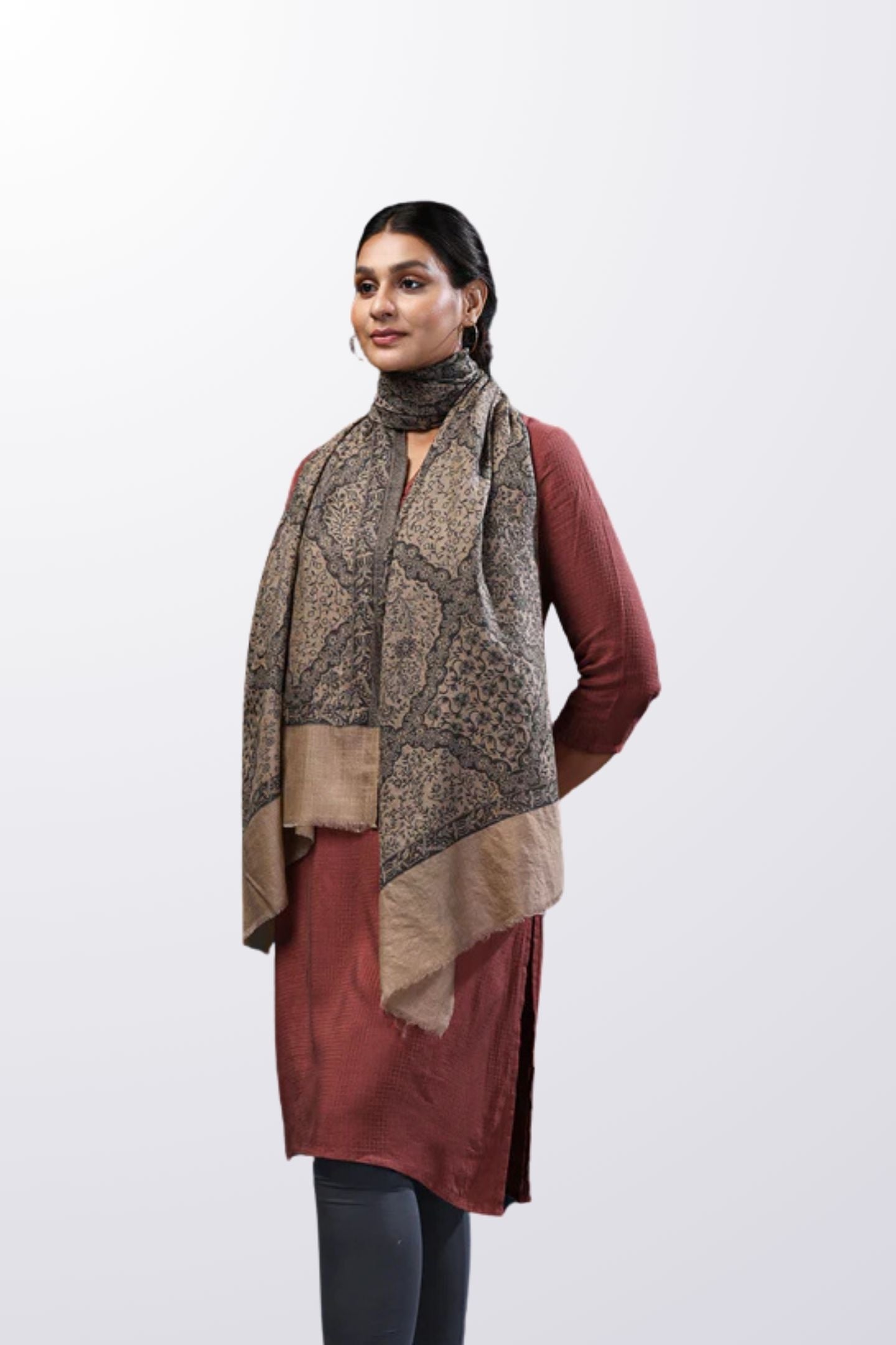 - Name: Desert Brown Stole With Black Floral