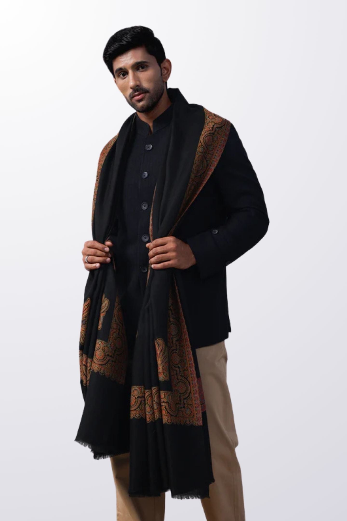 - Name: Kashmiri Paseley Black Border Wool Men Shawl