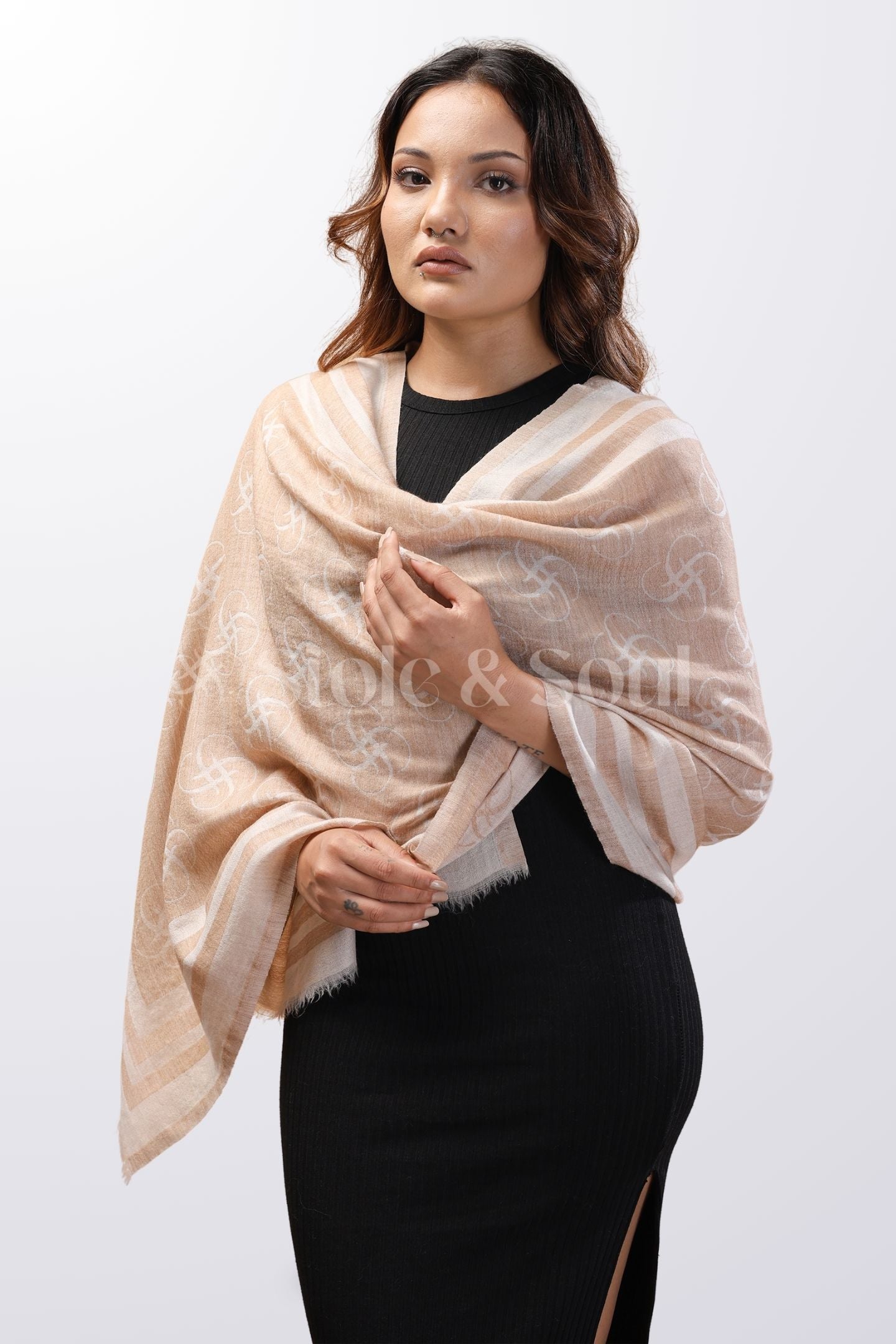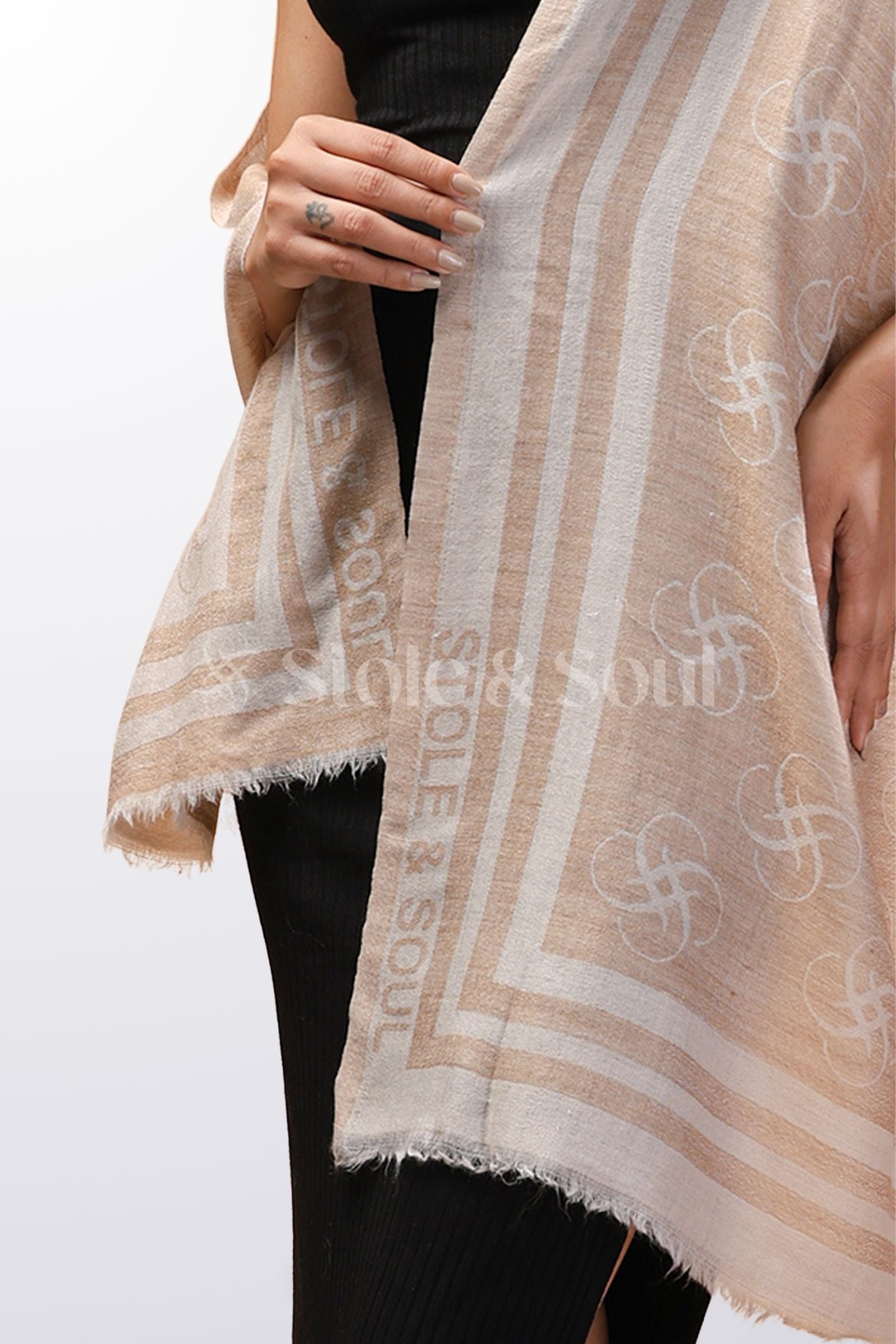 Logo Print Wool Stole - Beige