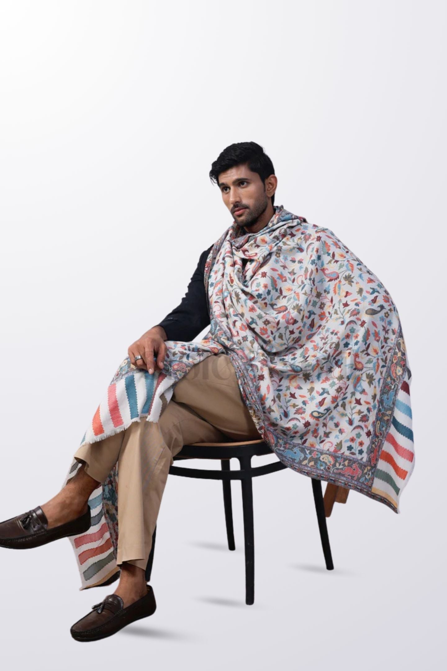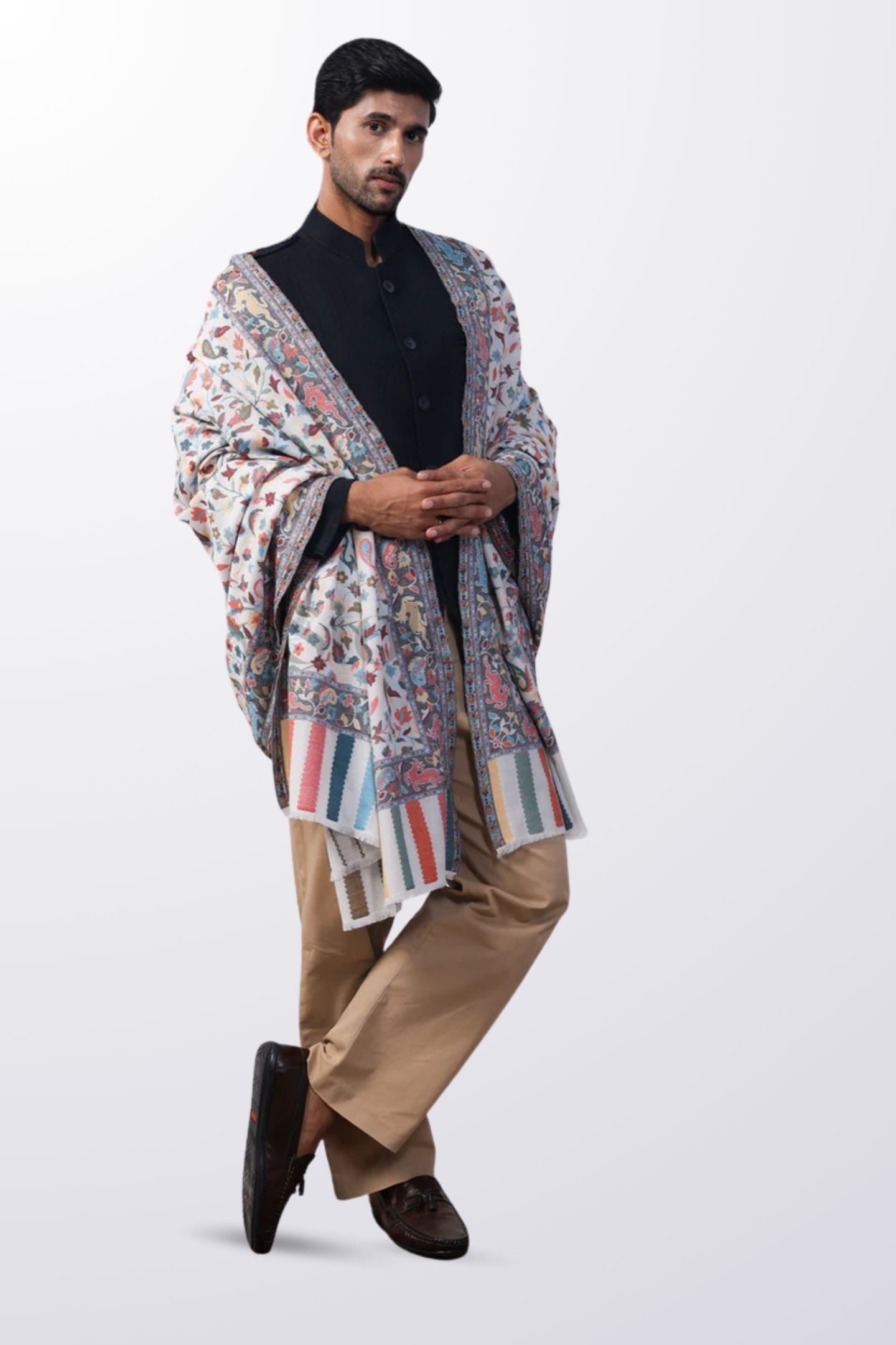 - Name: Men's White Kashmiri Jaal Paisley Shawl