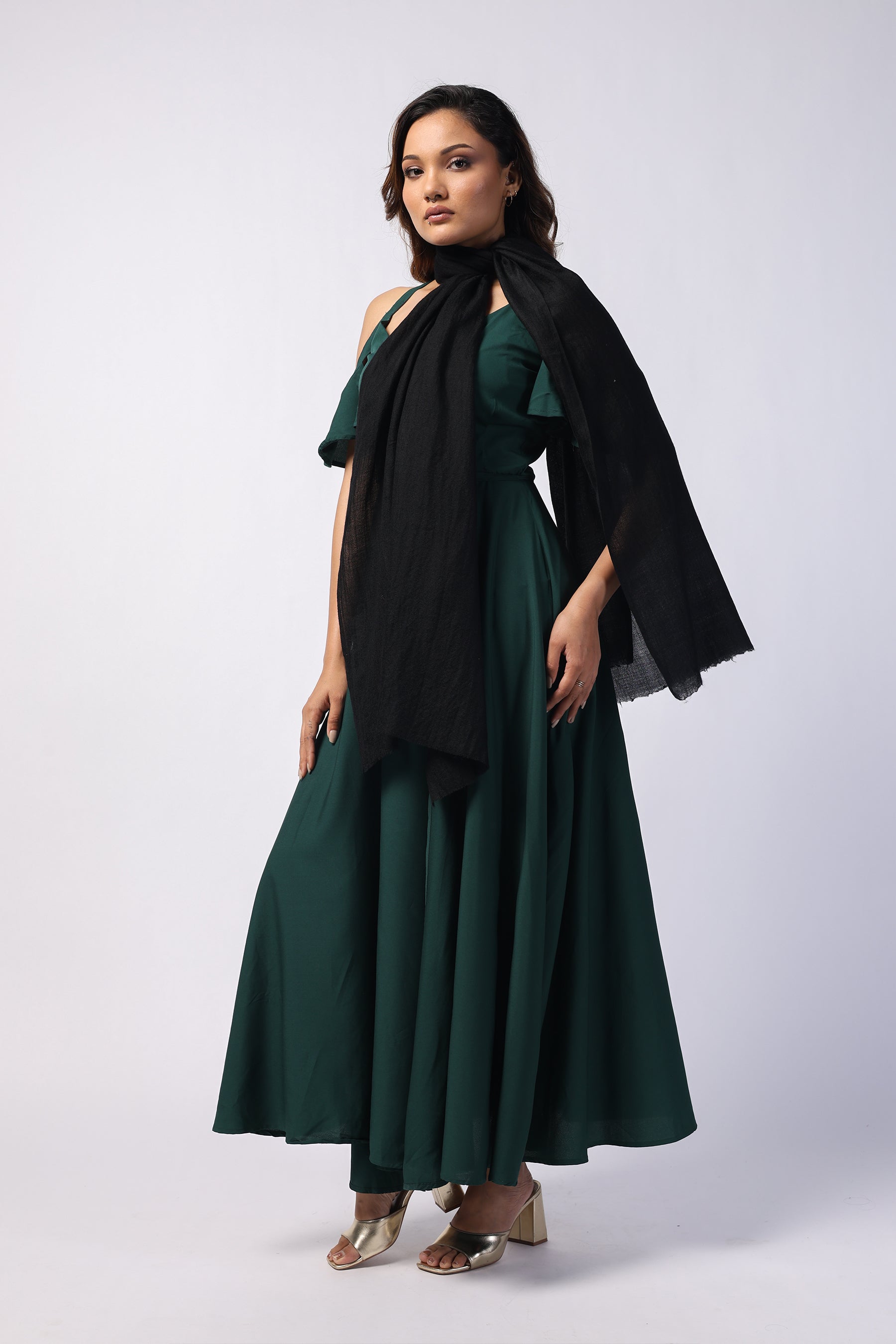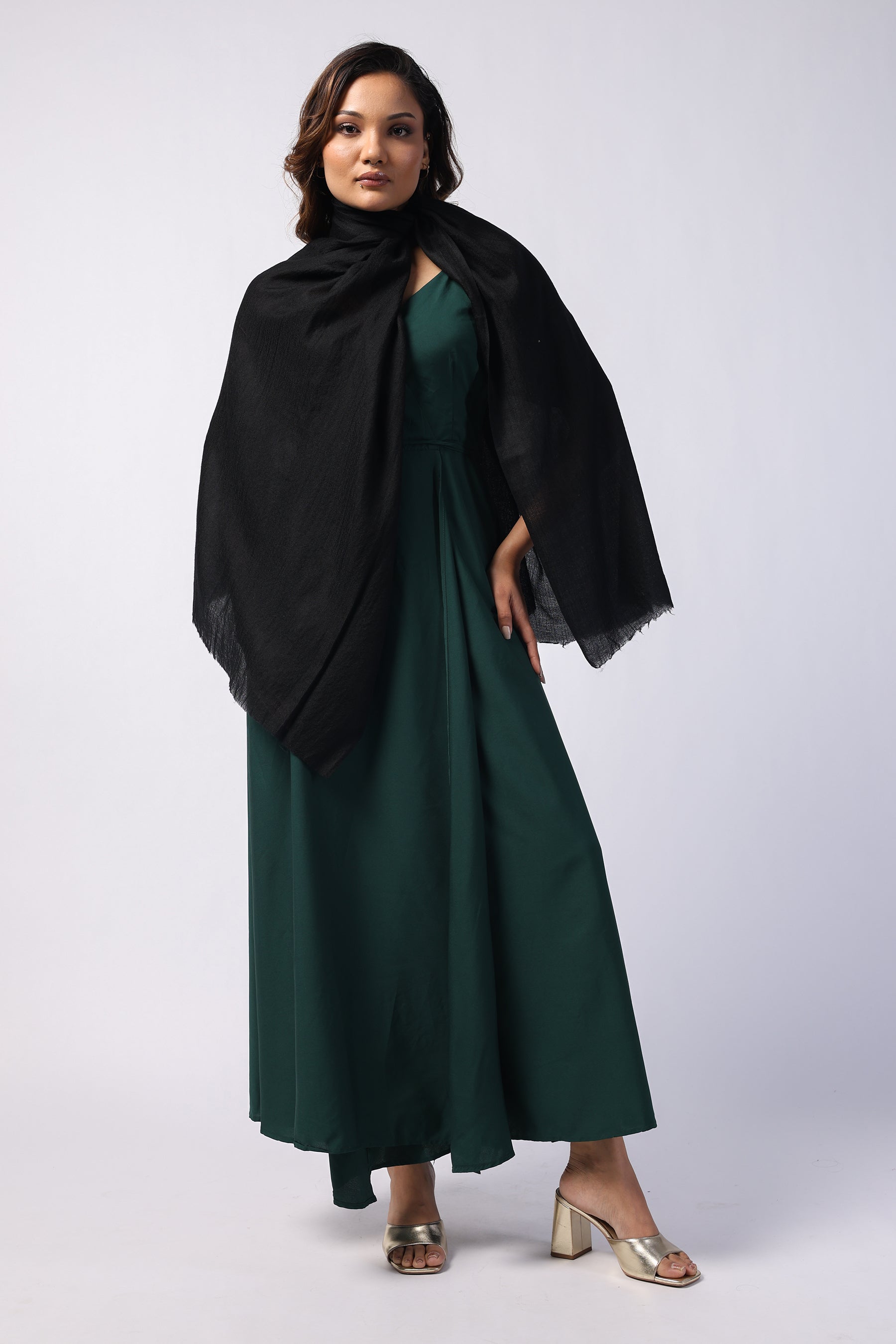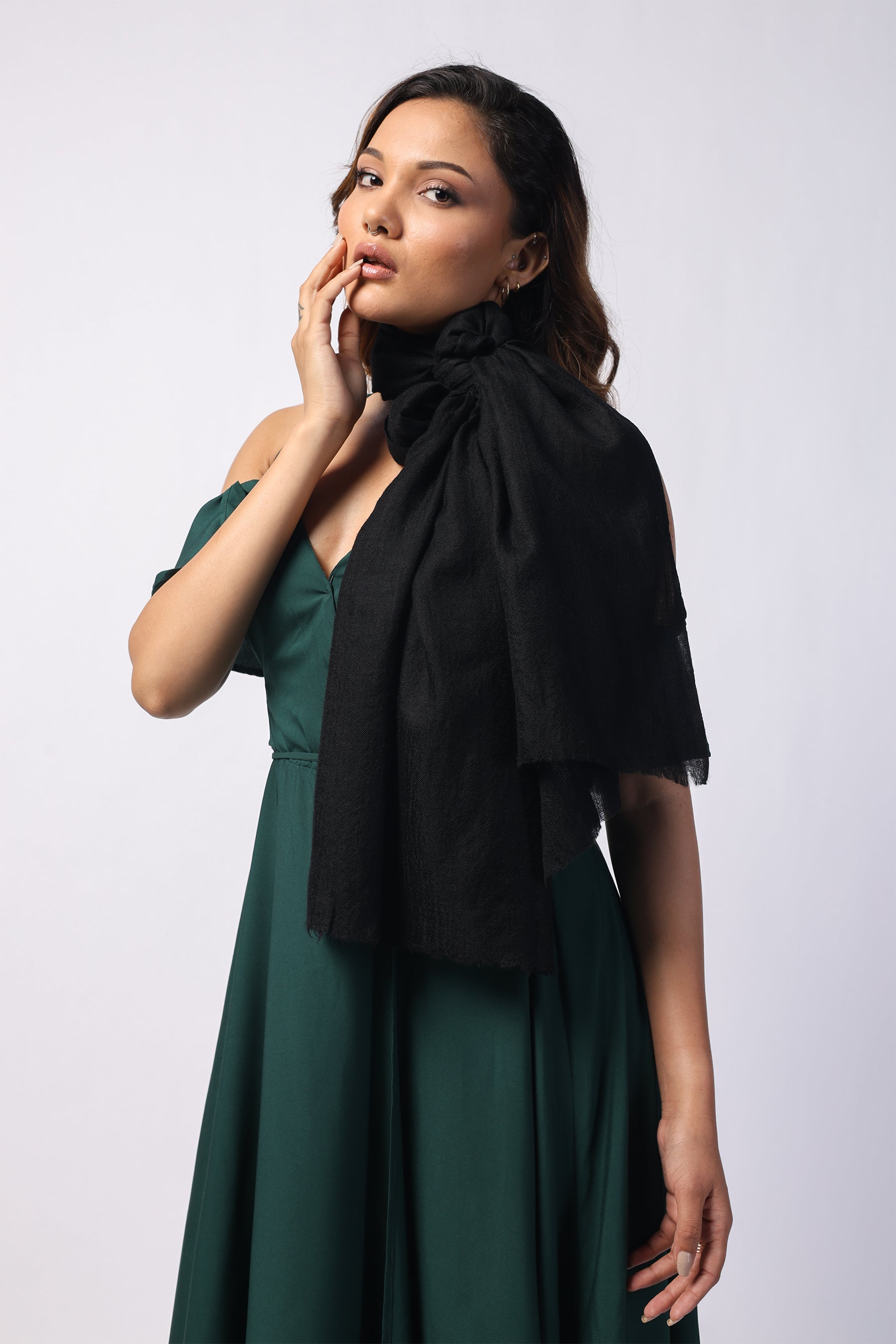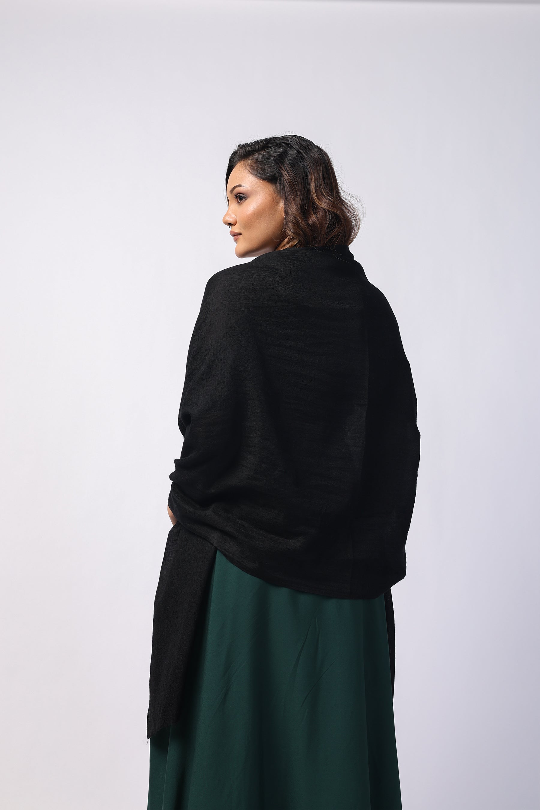Plain Black Premium Fine Wool Stole