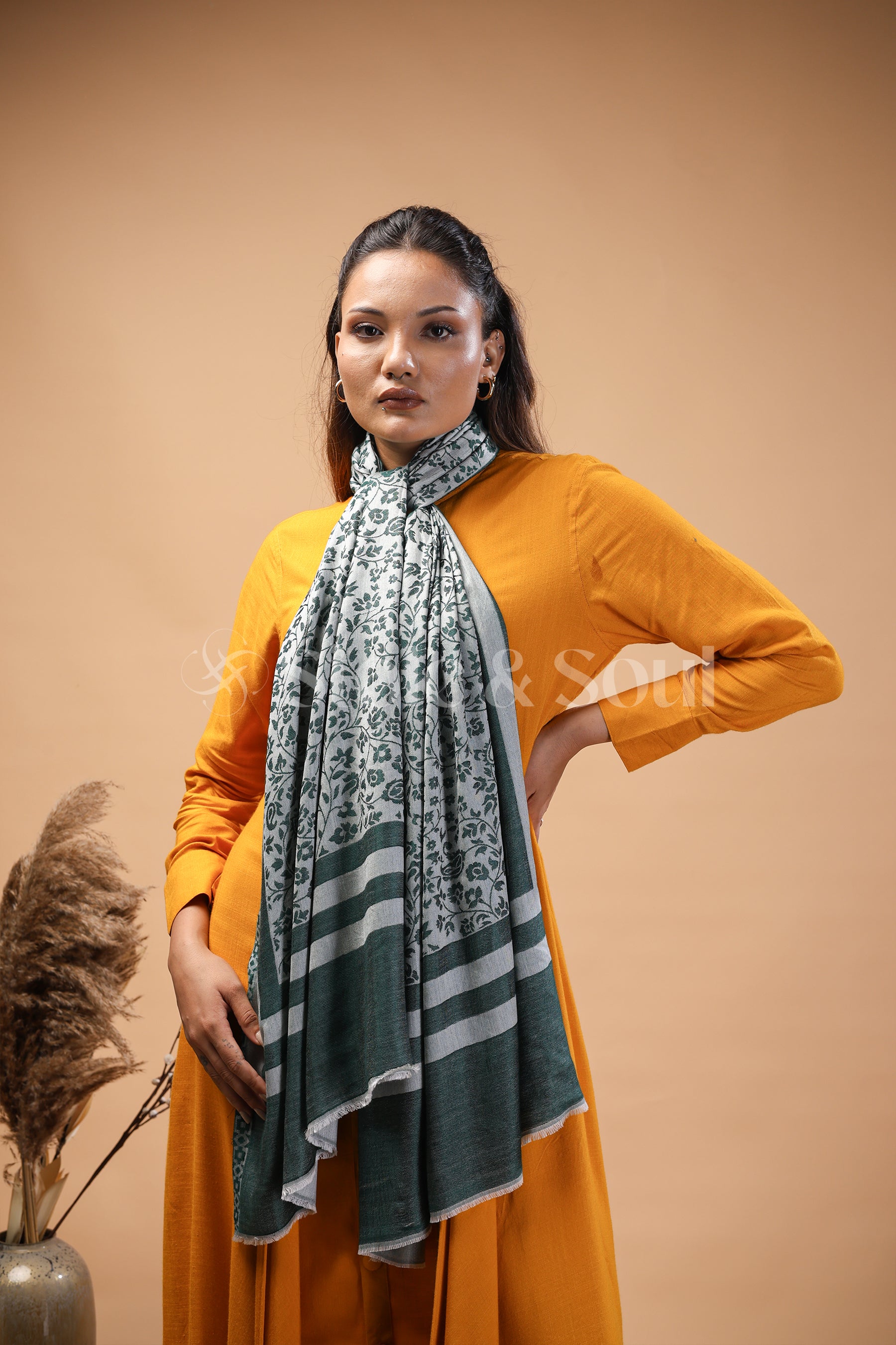 Green Blossom Reversible bamboo silk stole