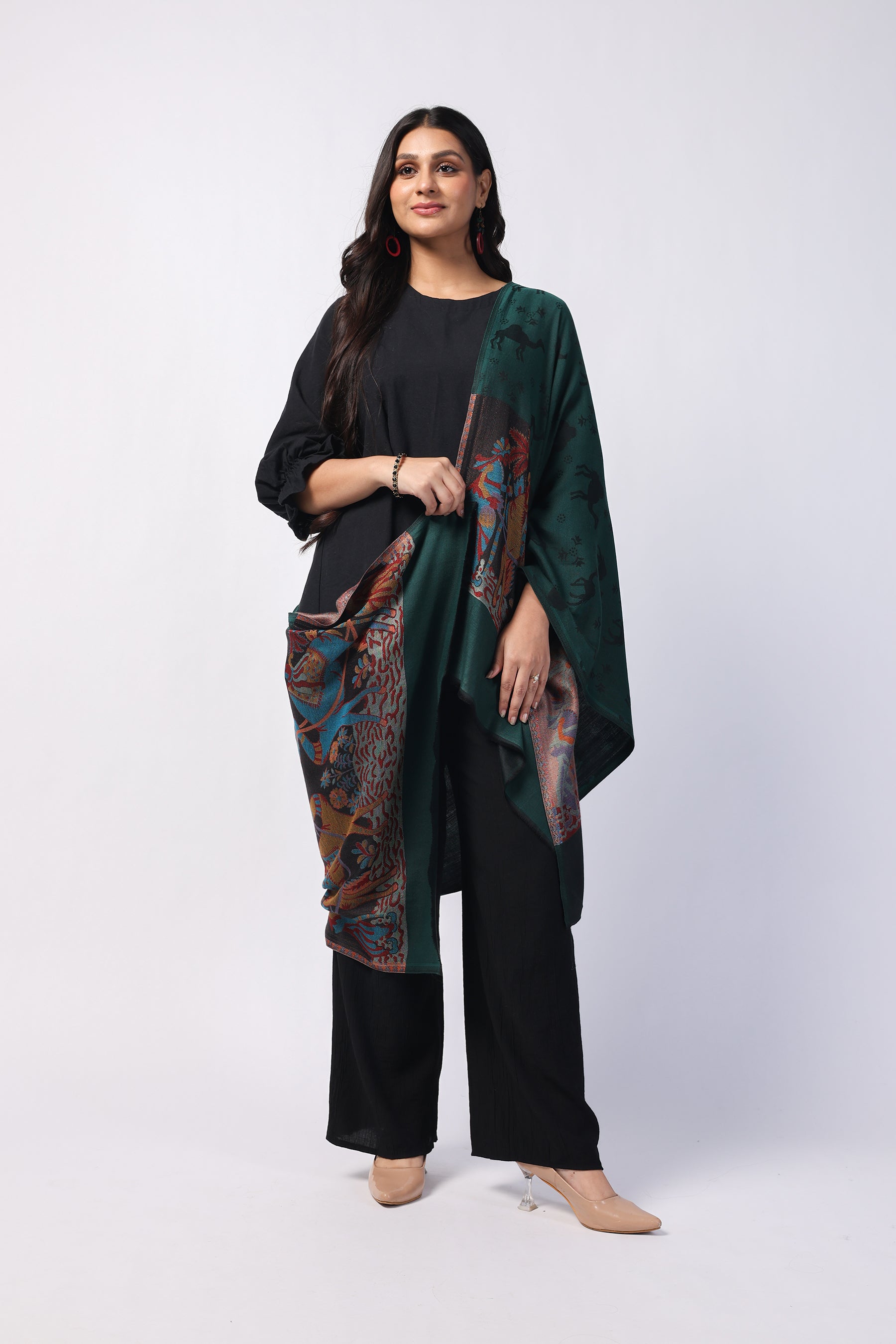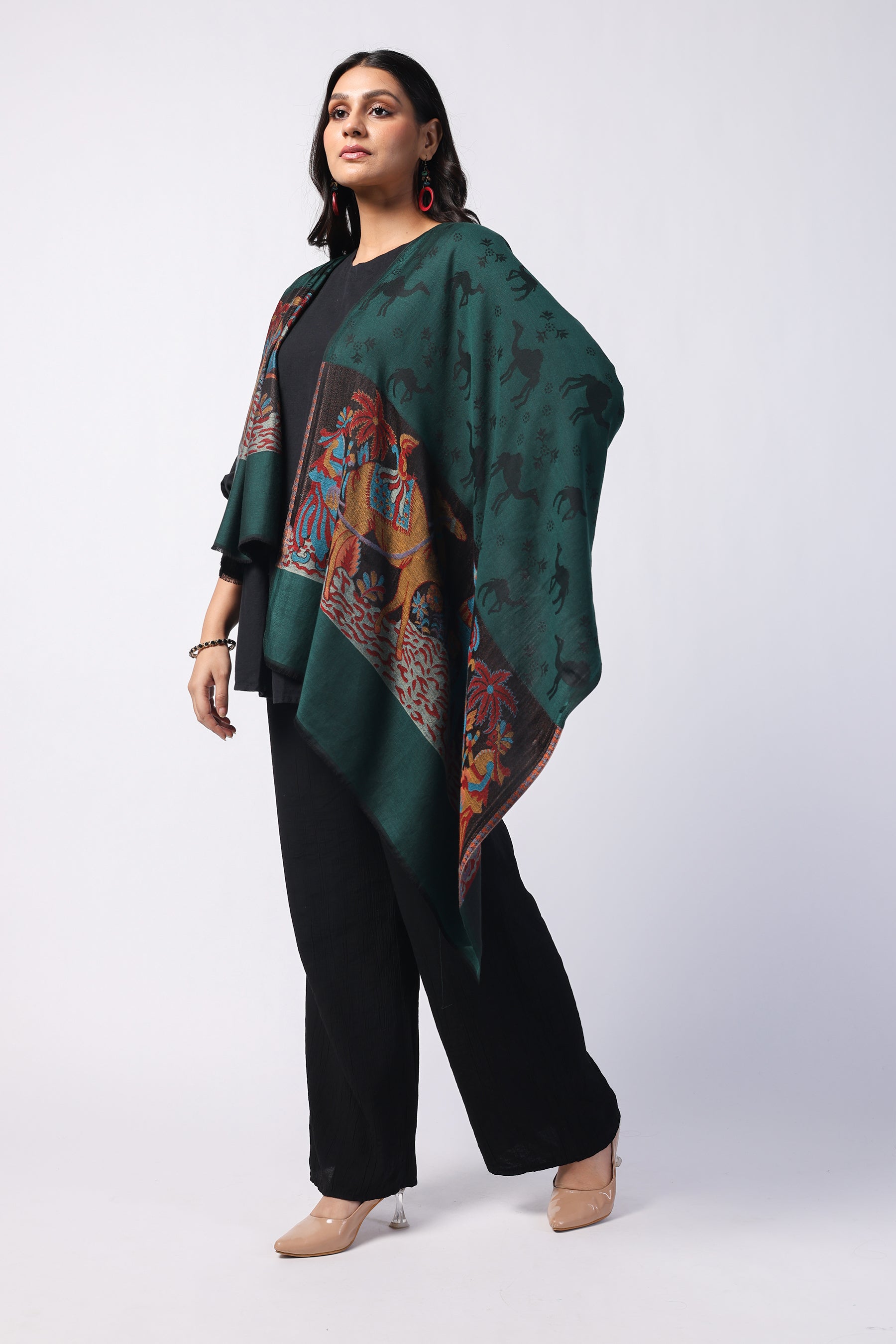 - Name: Camel Green Bamboo Silk Stole