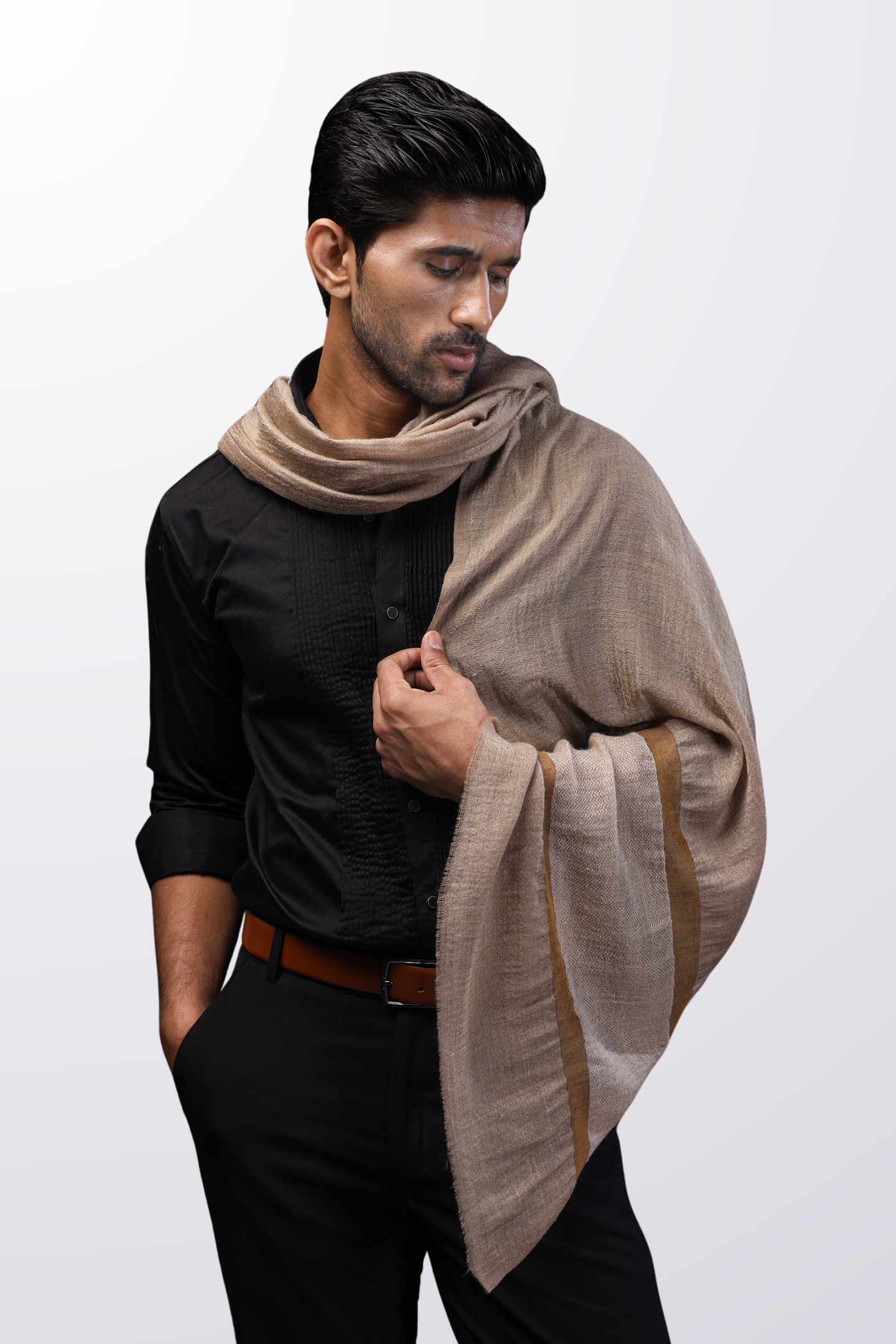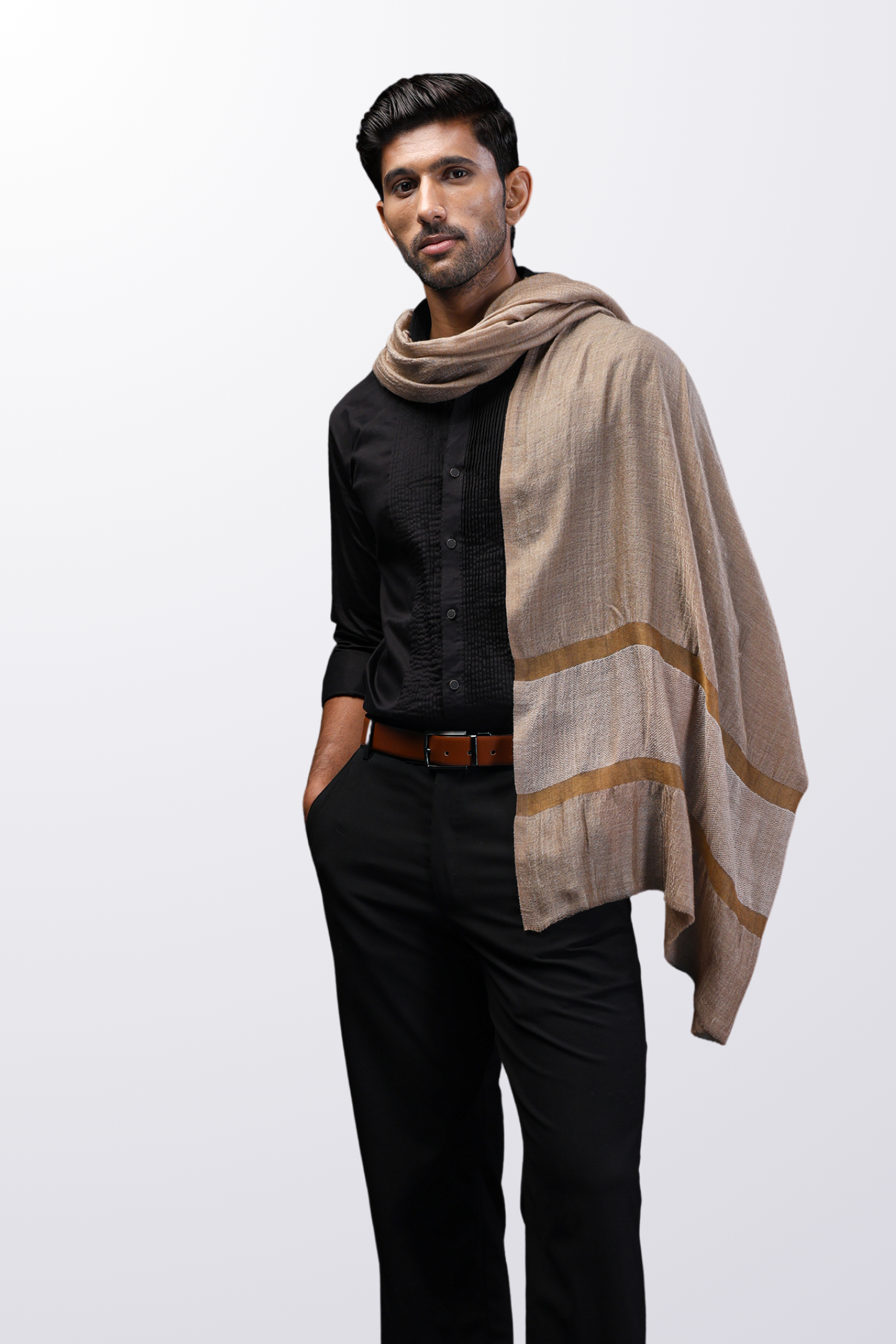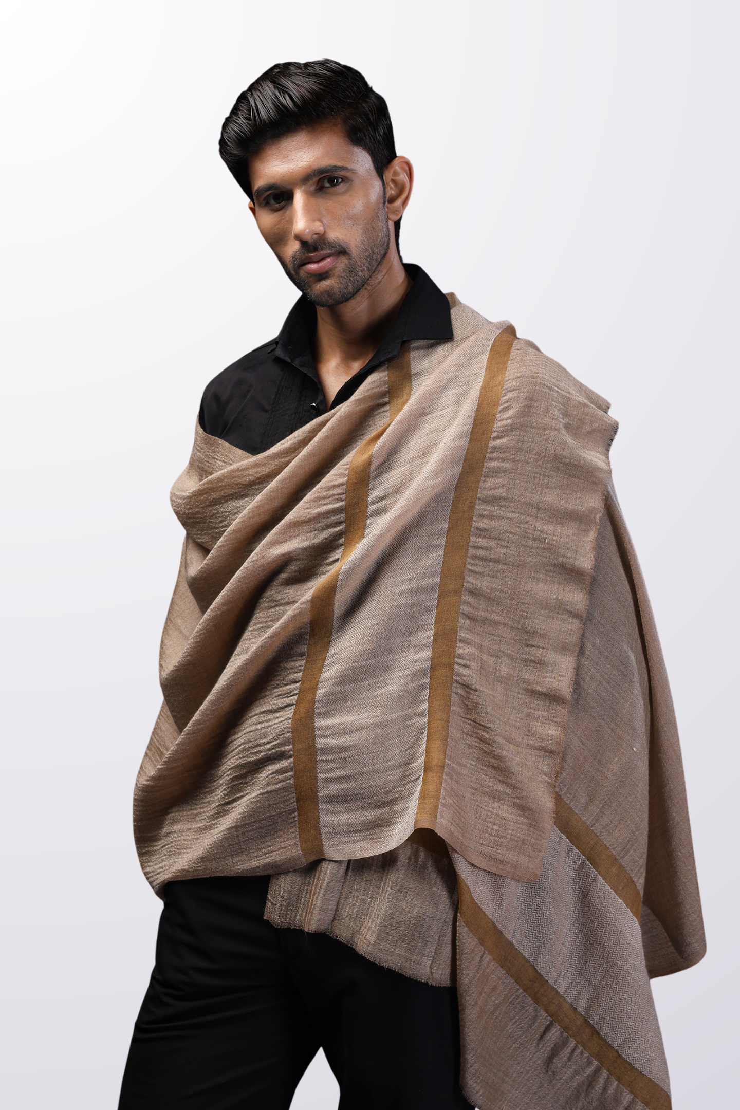 Classic Border Stole - Brown
